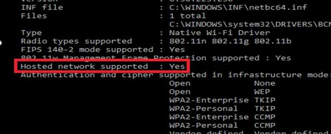 Una vez hecho, comprueba que existe un “Yes” junto a la línea “Hosted network supported” (red hospedada admitida). Si es así, tu ordenador puede hacer de rúter virtual.