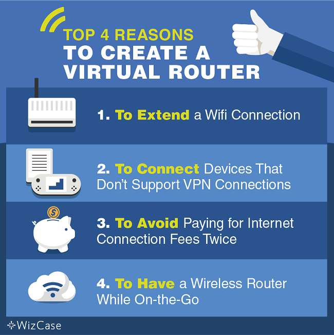 Un rúter virtual puede ayudarte a extender una conexión Wifi. Por poner un ejemplo, digamos que te encuentras en un hotel donde la conexión a Internet no llega a todas partes de tu habitación.