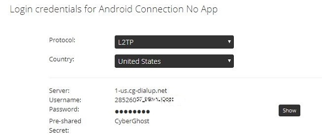 - Para la clave pre-compartida de IPsec introduzca CyberGhost